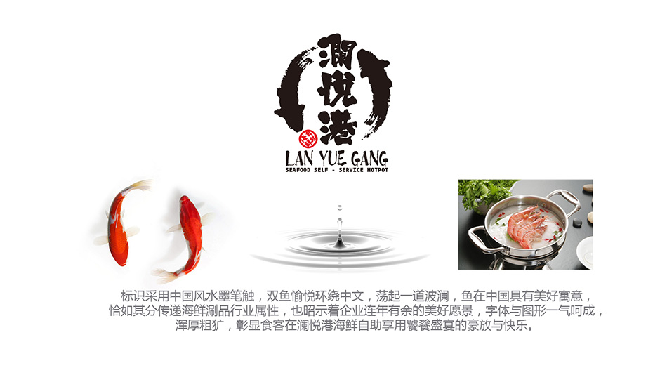 瀾悅港是一家新崛起的海鮮自助餐廳,整個風格定位通過傳統的書法飛白技法來體現瀾悅港品牌特征,既有傳統的中國風又體現餐飲文化時代特征,塑造與眾不同的品牌形象!